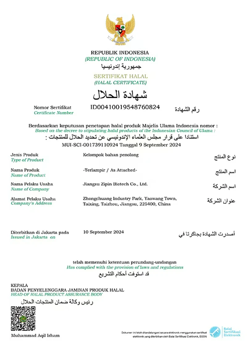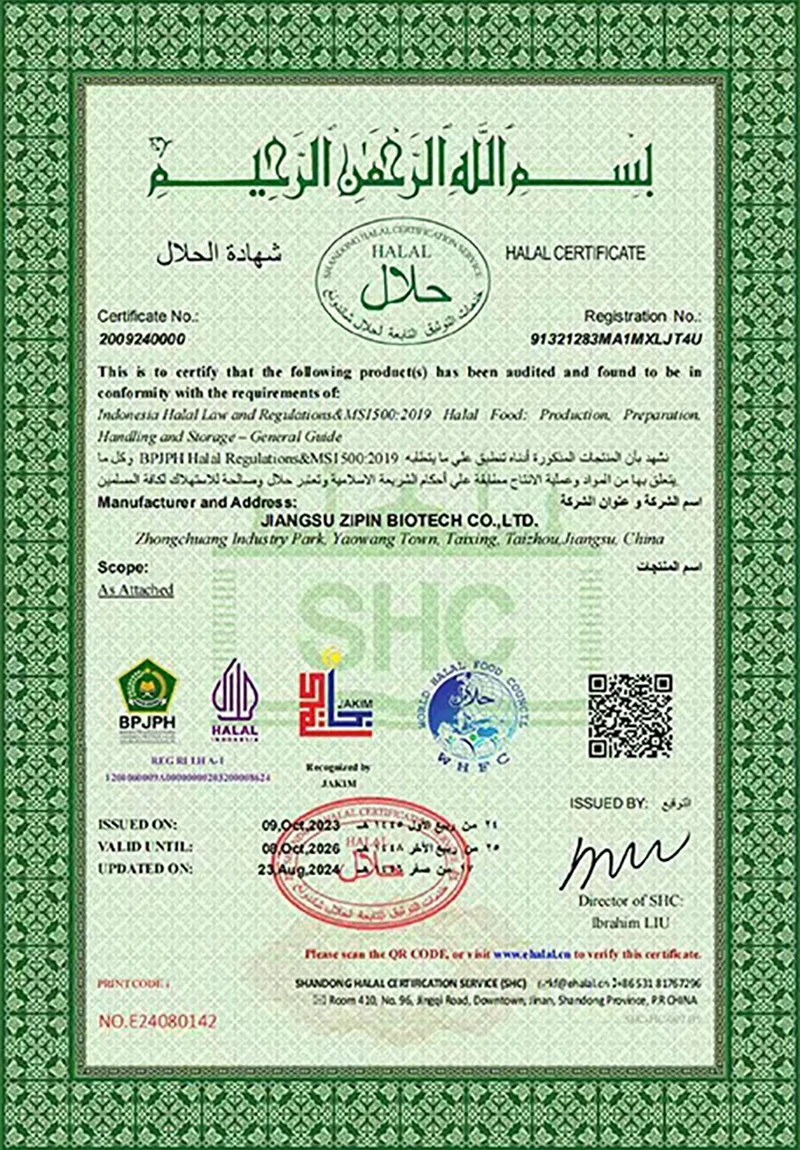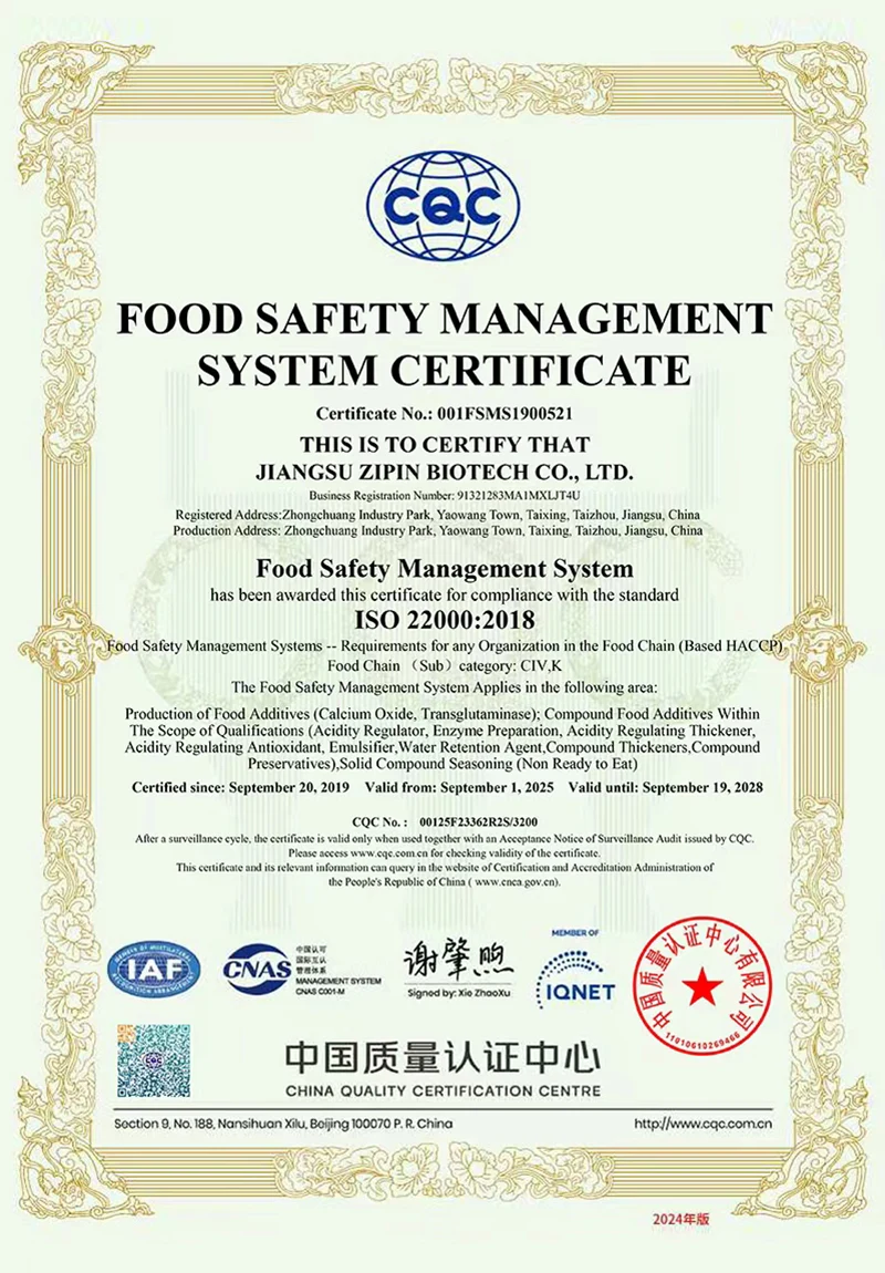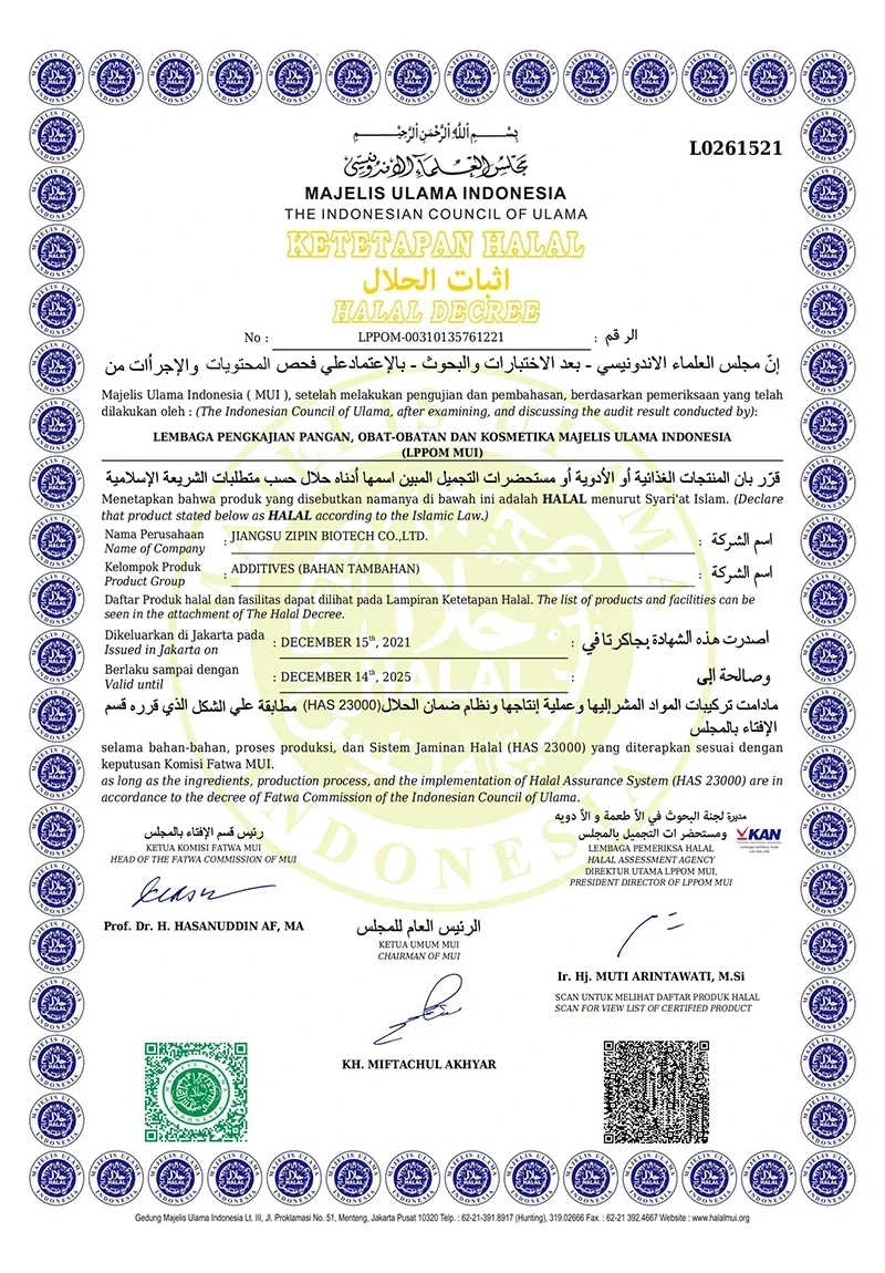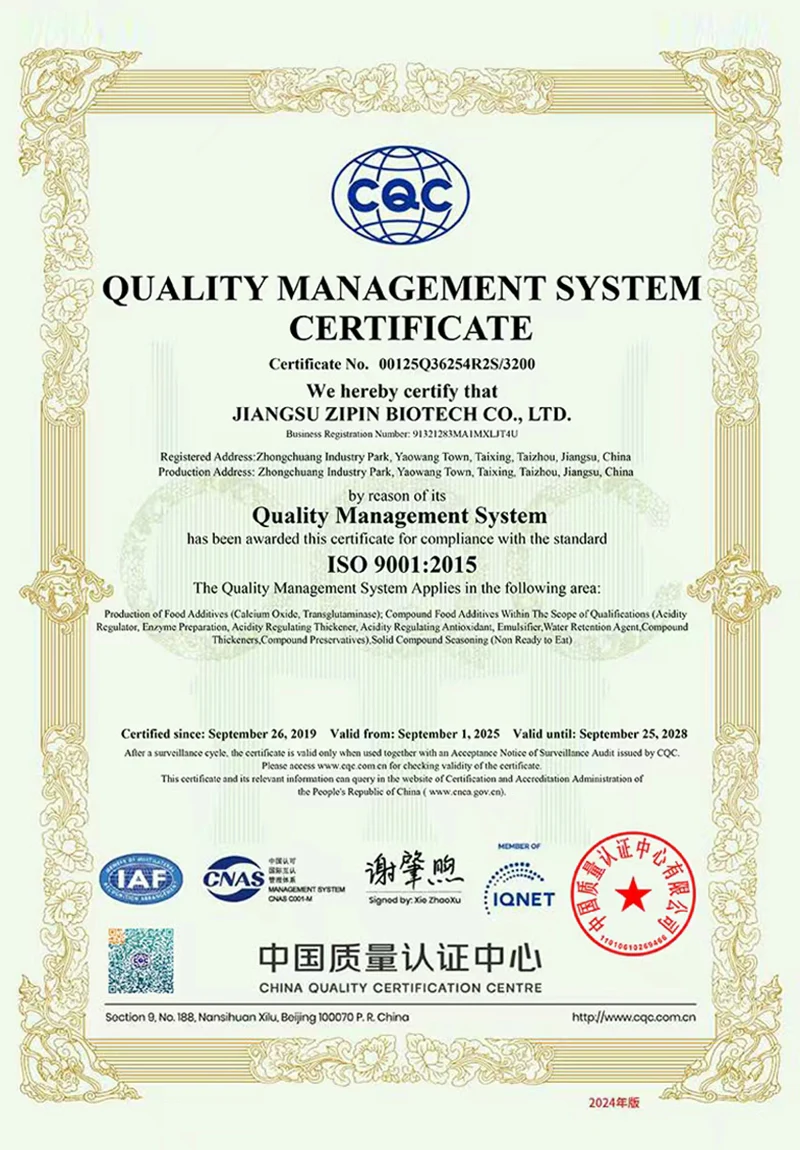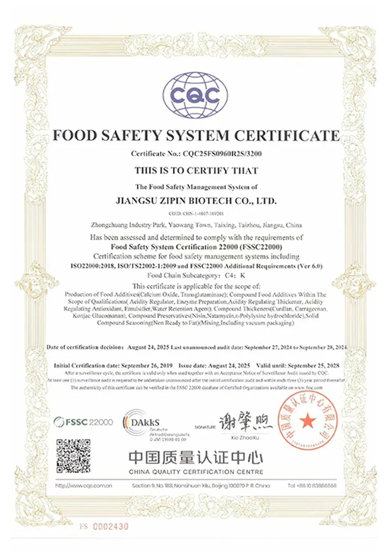 Jiangsu Zipin Biotech Co., Ltd. buvo įkurta 2016 m., apimanti 20 000 ㎡ plotą. Kaip šiuolaikiška privati įmonė, dabar daugiausia užsiimame maisto priedų MTTP, gamyba ir pardavimu. Mūsų pagrindiniai produktai yraTransglutaminazė, Curdlan, ε-polilizinas, Nizinas, Natamicinas ir kiti maisto priedai.